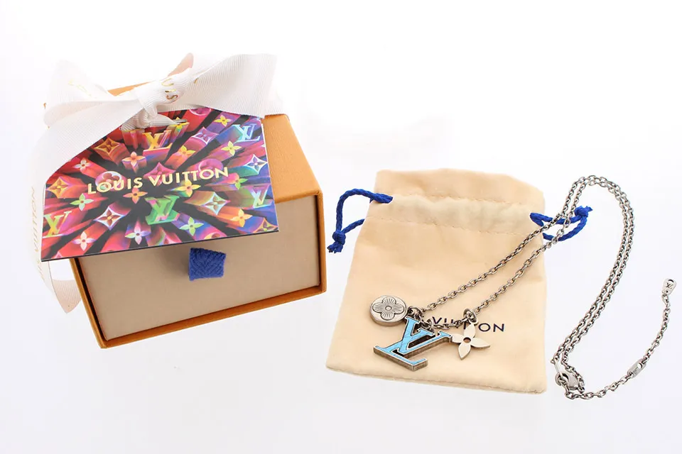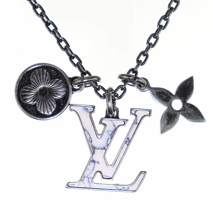 【国内発送/直営店】ペンダント LVイニシャル 合成石 ストラス ネックレス エイジングシルバー モノグラムフラワー アクセサリー PENDANT CHAIN LV NECKLACE