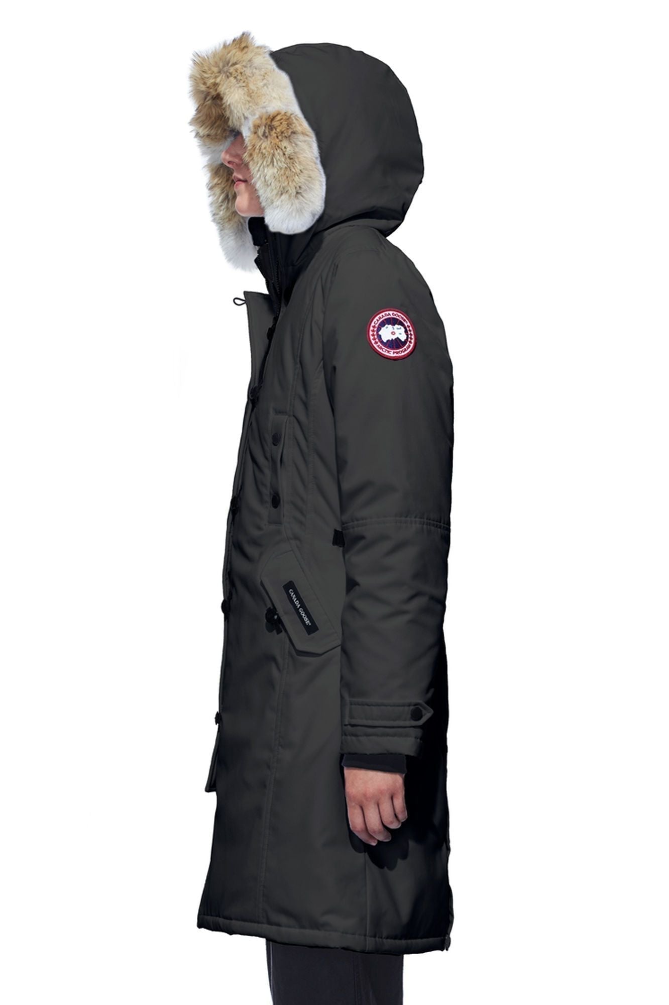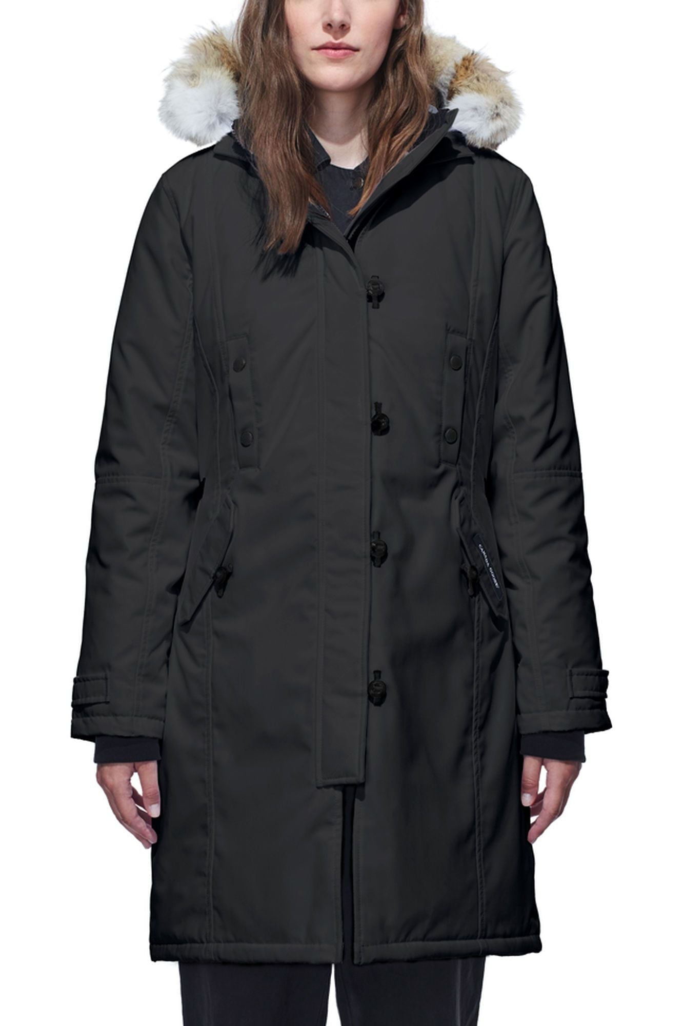 ウエストがシェイプされた女性らしいシルエットの「Kensington Parka」。